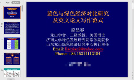 报告主要分为三部分:绿色经济与蓝色经济理论与方法介绍、绿色经济发展影响因素分析、英文论文写作范式。