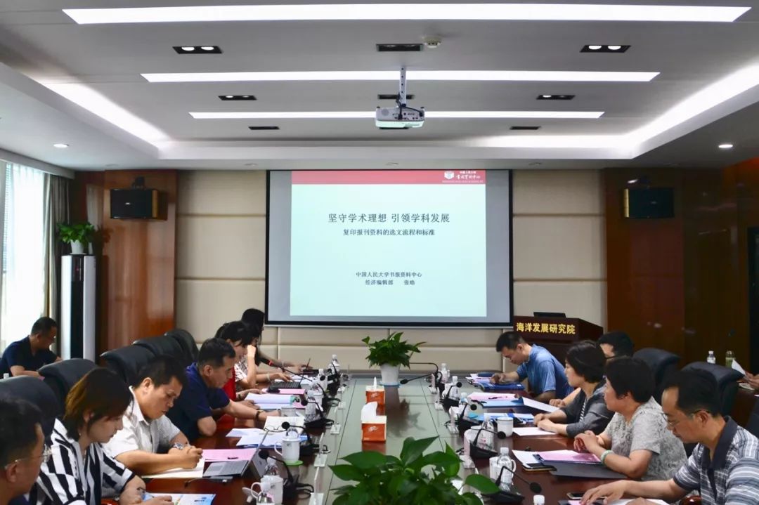 7月9日,开云电竞网址海洋经济金融支持与海洋灾害管理研究团队在海洋发展研究院举办了“海洋经济研究与专业学术期刊发展”学术研讨会。会议邀请了中国人民大学书报资料中心经济管理编辑部主任张皓、中国社会科学院工业经济研究所《中国工业经济》执行编辑姚鹏、山东财经大学《山东财经大学学报》管理编辑室副主任刘远、国家海洋信息中心何广顺主任、国家海洋信息中心业务处崔晓健处长等专家学者,对海洋经济研究、专业学术期刊发展等问题进行了座谈和研讨。国家海洋信息中心图书馆李雪副主任、开云电竞网址海洋发展研究院院长助理丁黎黎教授主持会议。