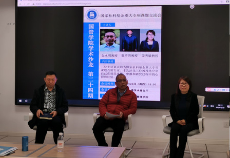 2021年3月25日下午,国管学院学术沙龙第二十四期暨“海洋治理与中国”研究团队2021年第1期沙龙如期举行。本期沙龙的主题为“国家社会科学基金重大研究专项课题交流会”,沙龙邀请国际事务与公共管理学院三位国家社科基金重大研究专项课题首席专家金永明教授、郭培清教授和姜秀敏教授,结合自己在项目选题、申报和研究过程中的体会,分享心得和经验。本次沙龙由学院副院长、海洋发展研究院院长助理孙凯教授主持,文科处席静副处长等50余位师生参加本期沙龙。