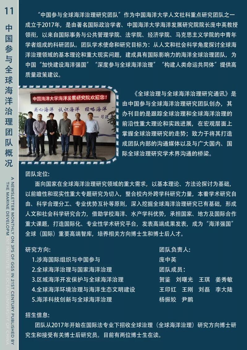 《全球治理与全球海洋治理研究通讯》是由中国参与全球海洋治理研究团队创办,其办刊目的是跟踪全球治理和全球海洋治理的前沿性重大理论和实践进展,在宏观层面上掌握全球治理研究的走势;致力于将其打造成团队内部的沟通媒体以及与广大国内、国际全球治理研究学术界沟通的桥梁。