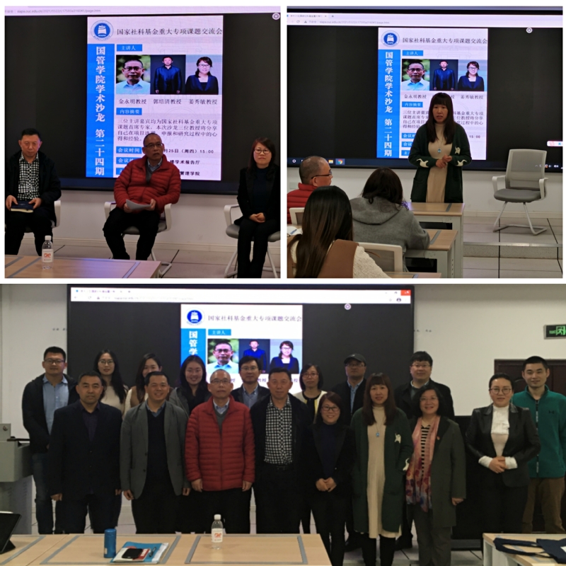 3月25日下午,国际事务与公共管理学院学术沙龙第二十四期暨“海洋治理与中国”研究团队2021年第1期沙龙如期举行。本期沙龙的主题为“国家社会科学基金重大研究专项课题交流会”,沙龙邀请国际事务与公共管理学院三位国家社科基金重大研究专项课题首席专家金永明教授、郭培清教授和姜秀敏教授,结合自己在项目选题、申报和研究过程中的体会,分享心得和经验。本次沙龙由学院副院长、海洋发展研究院院长助理孙凯教授主持,文科处席静副处长等50余位师生参加本期沙龙。在讨论互动环节,学院吴宾教授、杨振姣教授等从学术语言表述、逻辑结构图制作以及课题内容设计等方面进行提问,三位主讲嘉宾逐一进行了解答。最后,文科处席静副处长对本期学术沙龙进行总结。