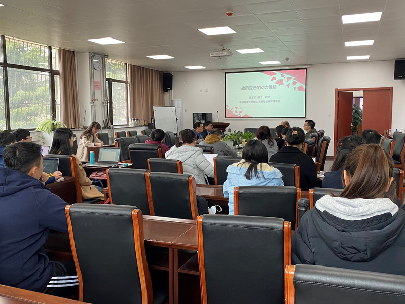 3月18日中午,国际事务与公共管理学院学术沙龙第二十二期如期举行。学院“青年英才”工程人才杨志军教授主讲,题目为“政策变迁的动力机制”。学院副院长孙凯教授在沙龙伊始介绍了本学期的学院学术沙龙规划。公共事业管理系主任吴宾教授主持沙龙。讲座中,杨志军教授对政策变迁核心概念进行了界定,提出了三大机制:直接触发机制、常规运行机制和核心稳定机制,并从选举、议程设置和偏好维度进一步解释了三种机制。在点评互动环节,学院姜秀敏教授、孙凯教授、李辉教授、吴宾教授等从理论本土化、政策变迁动力机制、案例研究、研究思维等角度发表了与讲座相关的观点,并对杨志军教授的研究提出了建设性的意见。杨志军教授就问题进行了回应,也与学生就公共政策变迁经典理论进行了讨论。