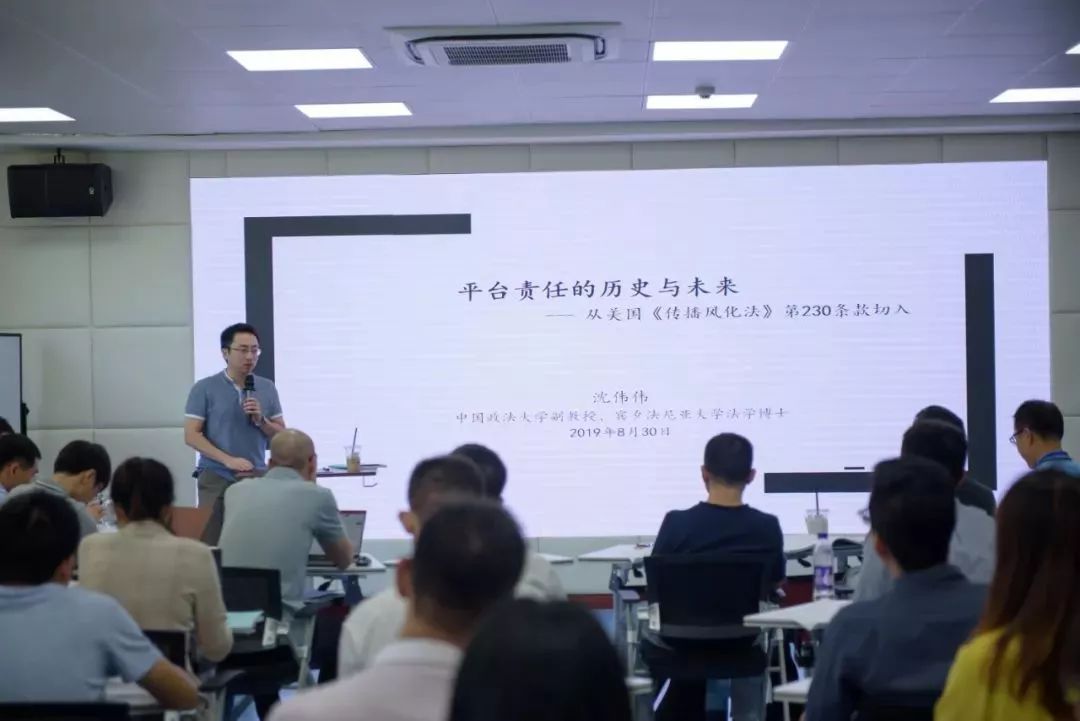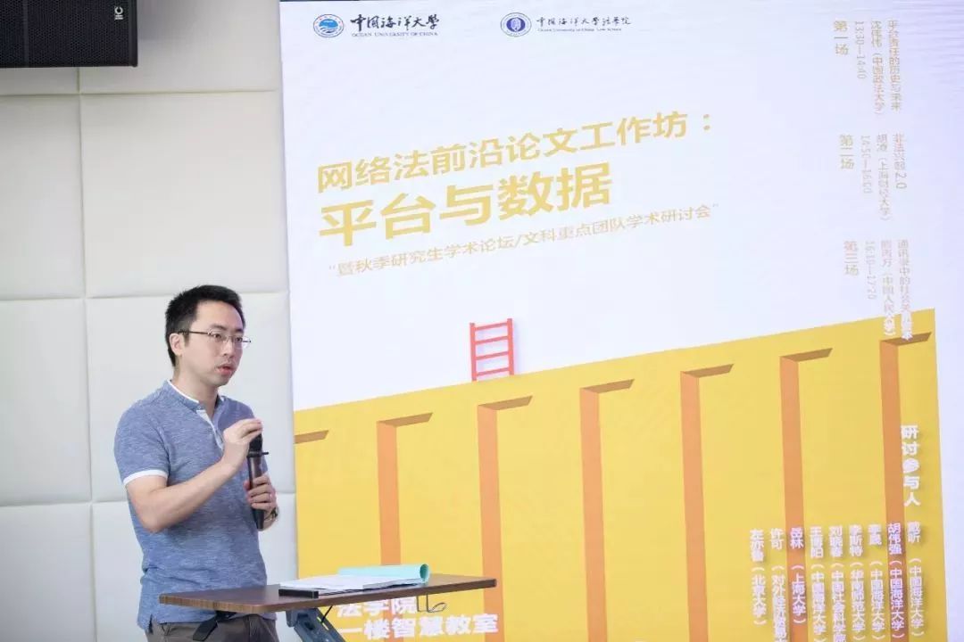 本次“前沿学术论文工作坊”以“平台与数据”为主题,包含三场前沿学术论文研讨。中国政法大学沈伟伟老师的论文《平台责任的历史与未来》围绕美国《传播风化法》第230条款展开讨论,结合法案发展历史和相关司法判例深入分析了互联网平台责任的内容、特点和展望;上海财经大学的胡凌老师带来了《非法兴起2.0》,更深层次地挖掘了与互联网架构相关的理论问题;中国人民大学熊丙万老师的论文《通讯录中的社会关系资本》讨论了数据权属问题,涉及数据中的剩余索取权和信息成本等理论视角。与会专家学者分别就三篇论文展开深入地提问和研讨,现场学术交流气氛十分活跃,思想火花不断碰撞,展现了一场法学前沿学术研究的饕餮盛宴。