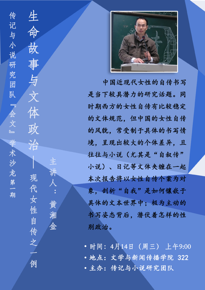 团队建设 | 学术活动预告:“生命故事与文体政治——中国现代女性自传之一例”学术沙龙