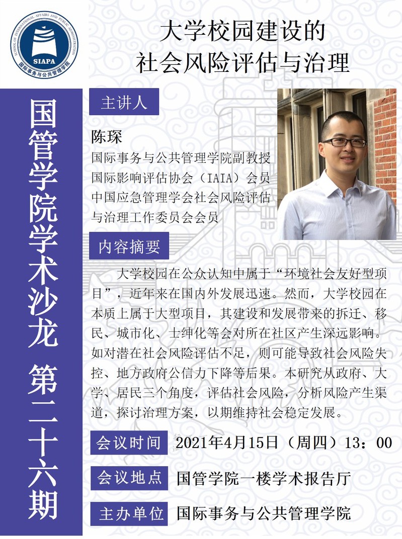 学术讲座 | 大学校园建设的社会风险评估与治理