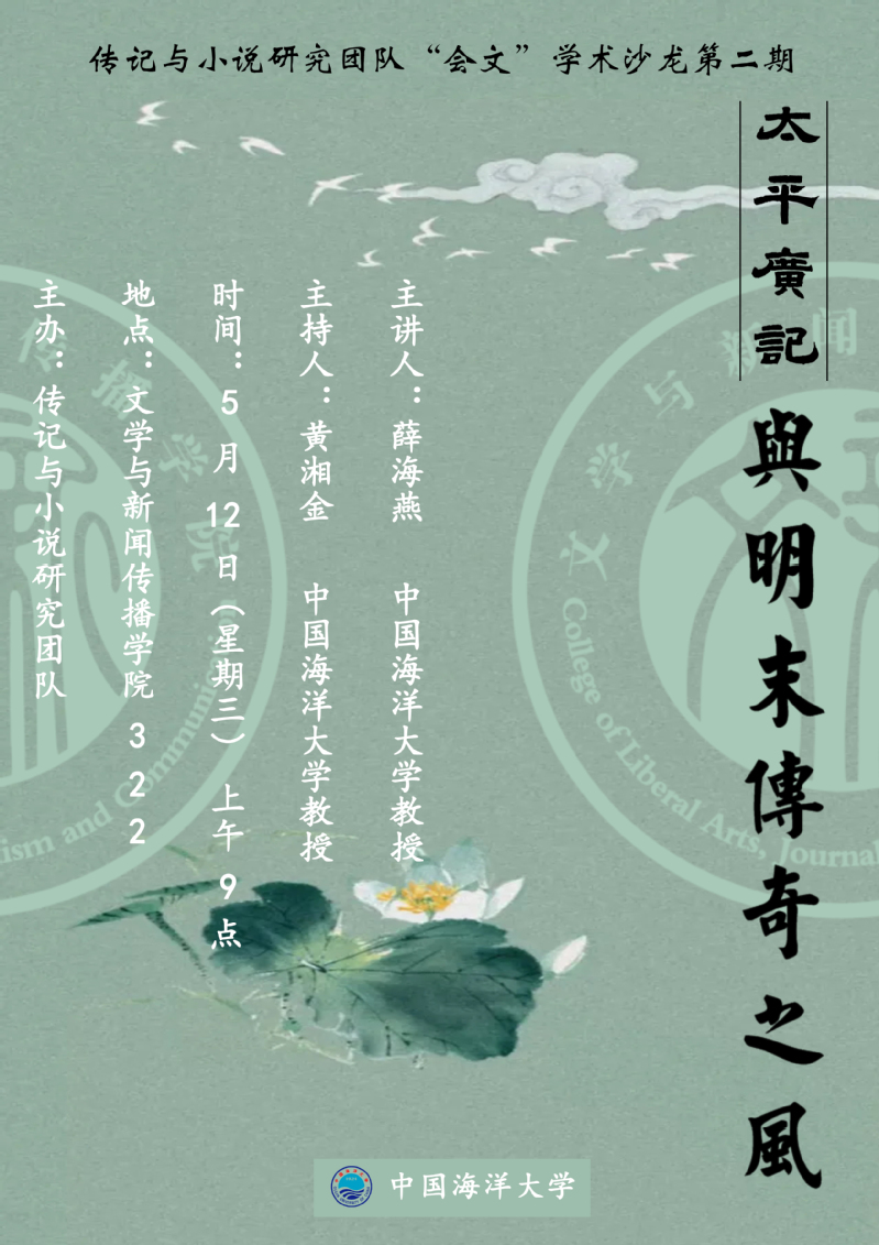 团队建设 | 学术活动预告:“会文”学术沙龙第2期——《太平广记》与明末传奇之风