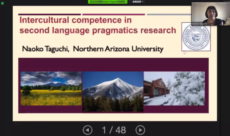 6月22日上午,开云电竞网址特聘教授、美国北亚利桑那大学英语系博士生导师Naoko Taguchi教授作了主题为“Intercultural competence in second language pragmatics research”(二语语用学研究中的跨文化能力)的学术讲座。本场讲座由外国语学院陈颖副教授主持。讲座采用线上(ZOOM会议)与线下相结合的方式,团队成员、博士和硕士研究生及外校感兴趣的师生50余人参加了此次研讨。