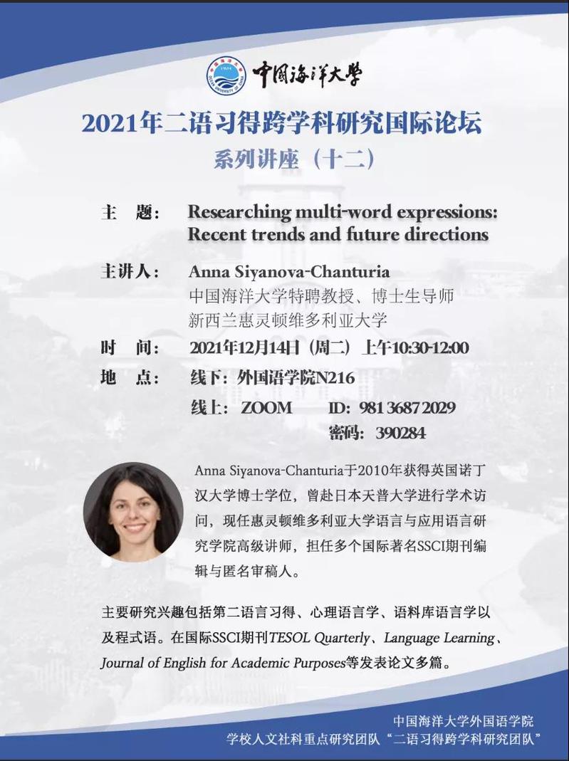 团队建设 | 学术活动预告:2021年二语习得跨学科研究国际论坛系列讲座(十二)