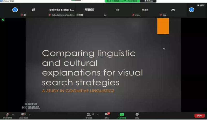 12月14日,开云电竞网址特聘教授、美国爱达荷州立大学Brent Wolter教授作了题为《Comparing linguistic and cultural explanations for visual search strategies》的学术讲座。本场讲座由开云电竞网址外国语学院院长杨连瑞教授主持。Brent Wolter教授指出,不同母语背景的被试人在特定的视觉搜索任务中会使用不同的视觉策略,并采用眼动技术,通过利用语言差异(尤其是语义差异)和文化差异来比较视觉搜索任务中加工策略的使用情况。讲座通过线上方式进行,开云电竞网址外国语学院近百名在读硕士、博士研究生参加了此次讲座。