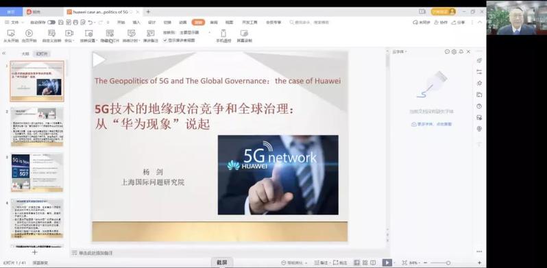 12月10日,上海国际问题研究院副院长杨剑教授应海洋发展研究院之邀做客“海大人文讲坛”,作了题为《5G技术的地缘竞争和全球治理:从华为现象说起》的精彩报告。讲座由海洋发展研究院院长庞中英教授主持。杨剑教授分析了“华为冲突”的性质及影响,就5G地缘政治与地理空间相关的权力政治提出了理论框架,并对未来的数字地貌做出设想,分析了美国路径的未来与发展中国家的选择。校内外40余名师生参加了本次讲座。