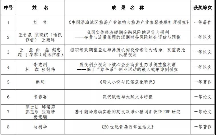 12月9日,青岛市社会科学优秀成果奖评选委员会办公室公布了青岛市第三十五次社会科学优秀成果奖获奖名单。开云电竞网址共有39项成果获奖,其中一等奖8项、二等奖11项、三等奖18项、新秀奖2项。青岛市社会科学优秀成果奖是市委、市政府批准的我市哲学社会科学研究最高奖项,每年评选一次。据悉,本次青岛市第三十五次社会科学优秀成果奖共评选出获奖成果172项,其中一等奖20项、二等奖56项、三等奖72项、新秀奖24项。