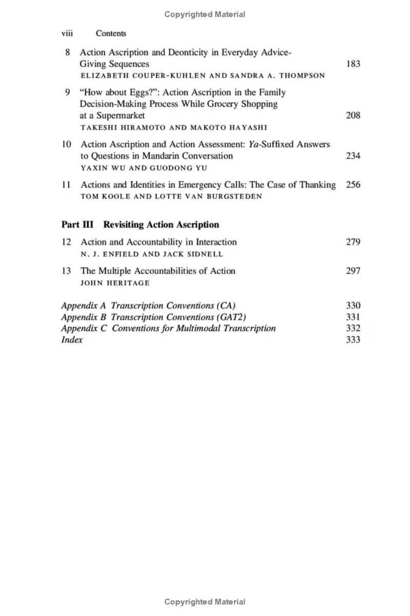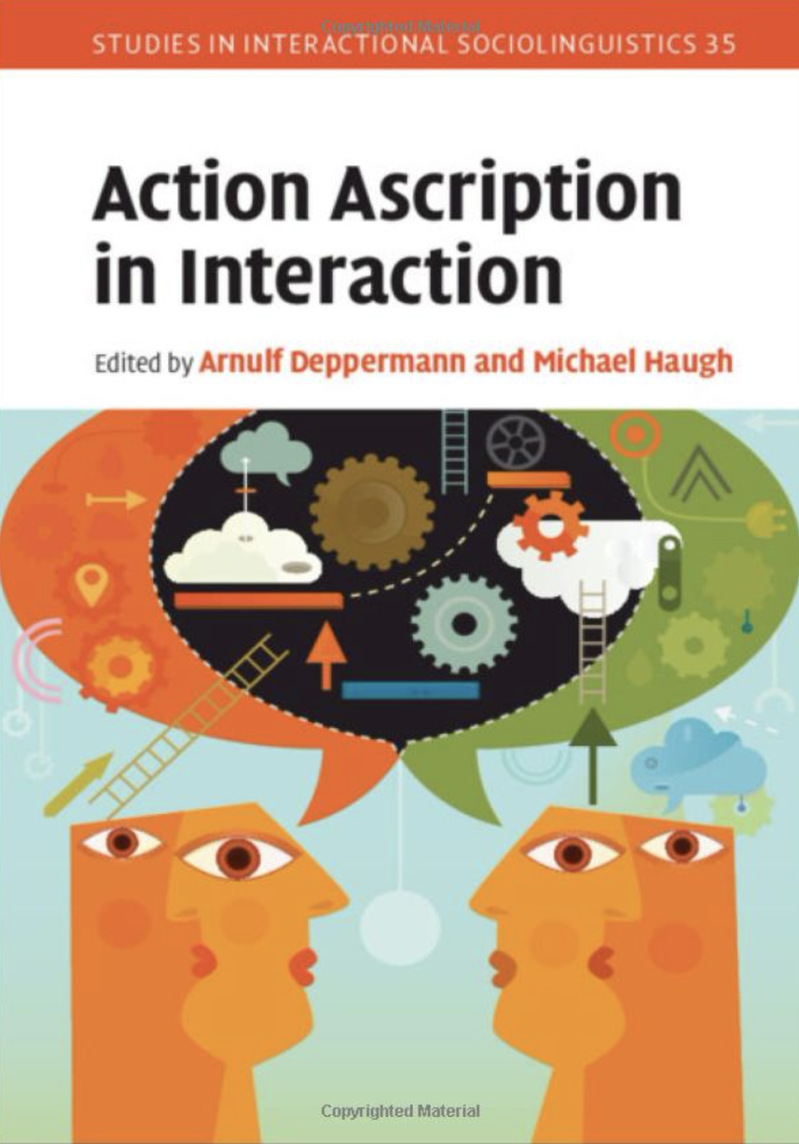 2022年初,Action Ascription in Interaction一书由剑桥大学出版社出版。该书是多年来剑桥大学出版社致力出版的“互动社会语言学研究”系列丛书之一。学校会话分析研究团队的吴亚欣教授和于国栋教授应丛书主编邀请为其撰文“Action Ascription and Action Assessment:Ya-Suffixed Answers to Questions in Mandarin Conversation”。该文章经国际同行专家评审被收录入该书。该书共收录了13篇文章,文章的作者均为会话分析领域的国际知名学者。