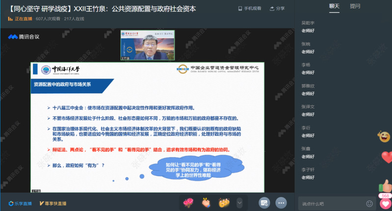 4月2日,“同心坚守研学战疫”系列学术报告第XXII期在开云电竞app安卓版下载安装企业微信乐享小直播开讲。开云电竞网址管理学院院长、中国企业营运资金管理研究中心主任王竹泉教授受邀主讲“公共资源配置与政府社会资本”,观看点赞达7000余人次。王竹泉将公共资源配置区分为政府公共产品和政府社会资本,并在此基础上创新国家治理理论和企业理论,对如何让“看不见的手”和“看得见的手”协同发力进行了深刻阐述,报告兼具理论意义和现实意义,让与会师生对社会主义基本制度与市场经济的有机融合有了更深层次的认识。报告结束后,王竹泉就同学们提出的政府社会资本在企业中如何确权等问题进行了深入交流。