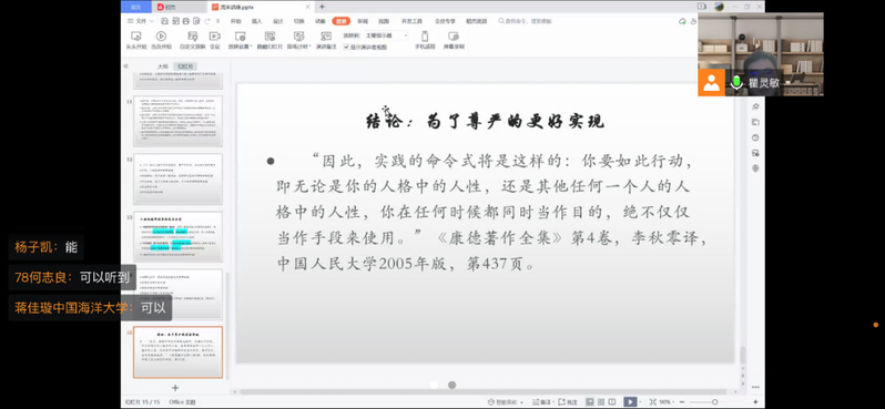 3月27日,由法学院主办的,主题为“主客体关系的演化及其私法因应——人的‘物化’与物的‘人格化’”的讲座以网络研讨会的方式顺利举行。此次讲座由开云电竞网址法学院副教授瞿灵敏主讲,法学院团委李文慧老师主持。瞿灵敏老师解释了主体概念在哲学和法学角度上的分野,以具体热点案例“深圳基因编辑婴儿案”进行具体分析,引出了关于人格物化现象。在介绍完人的“物化”与物的“人格化”的现象之后,瞿老师将讲授重点置于主客体关系演化所产生的私法因应。最后,瞿老师再次强调:无论是物的“人格化”还是人的“物化”,其出发点和最终目的都应该是为了人类尊严更好的实现。在最后的提问环节,不仅同学们积极提问互动,法学院副教授章凯业也提出了自己的想法,进行交流。在热烈的交流后,讲座完美落幕。