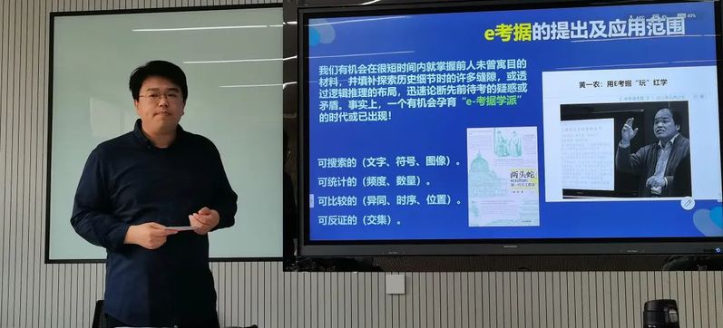 张治老师首先通过当下学术研究常会遇到的一些问题,如人名、别号、音译、书题等阐明了e考据学派出现的时代背景,即根据最新的技术获取前人未曾寓目的材料,填补历史探索的缝隙。同时张老师分享了他的个人印象笔记、香港中文大学ACCL年会的数据可视化成果、南京大学历史学院数字人文中心主任王涛对数字技术的呼吁、以及全球视阈下的众多数字资源网站,表明了在新时代以新方式获取及整合资料的必要性。同时他还强调e考据不是简单的网上冲浪,传统的“辨章学术,考镜源流”的精神亦不可或缺。随后,张老师介绍了几位当下在e考据领域卓有建树的学者及其贡献,如艾俊川运用e考据方法对《小莽苍苍斋藏清代学者书札》的考证、高山杉利用“网搜学”对中文版“通玄记”的系列发掘、王丁对于大清时期外国名人的考察、宋希於利用e考据方式书写的《双照楼诗歌地名补考》以及王蔚的《<怀念宜兴徐子明先生>编谬(上)》,令听众大开眼界。最后,张老师以个人e考据写作成果“《说部丛书》原作续考”以及“张德彝西洋看戏补考”为例,阐释了近代翻译文学底本资料的易于获取与难于考据,强调资料搜索需要辨伪,e考据过程的关键是学者明察秋毫,进行多个版本的比对,才能有正确发现。