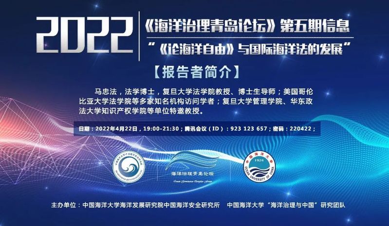 团队建设 | 学术活动预告:《海洋治理青岛论坛》第五期——《论海洋自由》与国际海洋法的发展