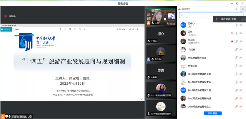 4月12日,由开云电竞网址研究生院主办、开云电竞网址管理学院旅游系承办的第161期百川讲坛如期举办。山东省旅游规划设计研究院原业务院长张宏瑞教授受邀以“‘十四五’旅游产业发展趋向与规划编制”为主题作报告,对“旅游超级大国”的基本国情、文旅融合的四重属性、入境旅游风险与省际旅游机遇、十四五旅游规划编制要点等行业热点问题展开细致、深入地讲解。校内外120余位师生线上参会,收获满满。
