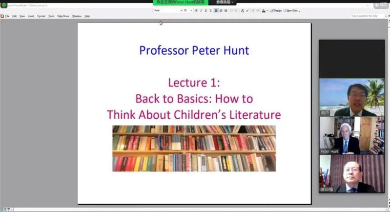 4月14日,儿童文学研究团队组织策划的“彼得·亨特(Peter Hunt)教授系列讲座”首场讲座线上开讲。国际知名儿童文学学者彼得·亨特教授受邀带来题为“回到根本:如何思考儿童文学”的学术报告。讲座由外国语学院徐德荣教授主持,线上累计观看人数1000余人次。彼得·亨特教授提出儿童文学研究已成为一门复杂的国际性的学术研究,求索“儿童文学”一词的定义极为重要,并从英文词法入手,分析了“children’s literature(儿童文学)”一词中“children’s”所有格可能存在的诸种涵义,展示了他对童书《彩虹魔法仙子》的五种读解方法,指出“一本好的儿童读物是成人作家和儿童读者之间相互尊重协商的产物”。