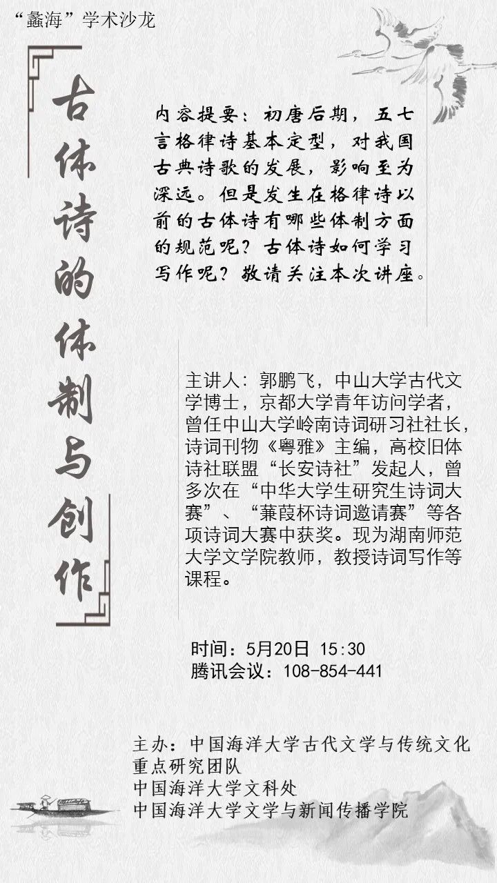 团队建设 | 学术活动预告:古体诗的体制与创作