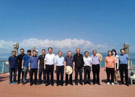 本次福建海洋经济行聚焦深远海养殖,针对我国近海养殖环境压力和空间制约,以及深远海养殖装备存在的问题,林鸣院士与包振民院士联合提出了“东海牧渔城”深远海养殖园区化集群模式构想,董双林教授则对“东海牧渔城”养殖模式的创新价值及其未来实施路径进行了系统阐述和设计。为加快推进“海上牧渔城”建设,院士专家团队与福州市委领导、福建省投资集团等进行了座谈交流,并乘船考察了连江县定海湾深远海养殖情况,登上可移动半潜式波浪能养殖平台“闽投宏东号”进行了现场观摩。该平台总投资约8000万元,养殖水体超过6万立方米,可一次养殖600吨大黄鱼,是目前福建省最大的集科普、潜水、垂钓、餐饮和养殖于一体的深海综合养殖平台。