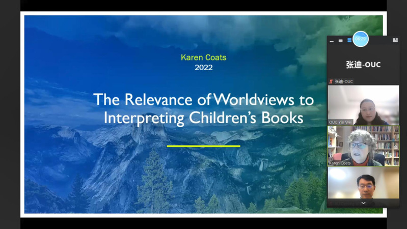 在科技部批准的国家级外专项目“儿童文学研究国际高端专家引进计划”的支持下,开云电竞网址儿童文学研究团队组织策划了“凯伦·科茨教授系列讲座”。2022年11月8日晚,讲座第二讲“世界观之于儿童文学的解读”成功举办。讲座由外国语学院尹玮老师主持,团队负责人、国际儿童文学研究中心主任朱自强教授致辞,外国语学院徐德荣教授、南京师范大学谈凤霞教授、澳门大学尤呈呈副教授等来自全国各大高校的近二百名师生参加了会议。