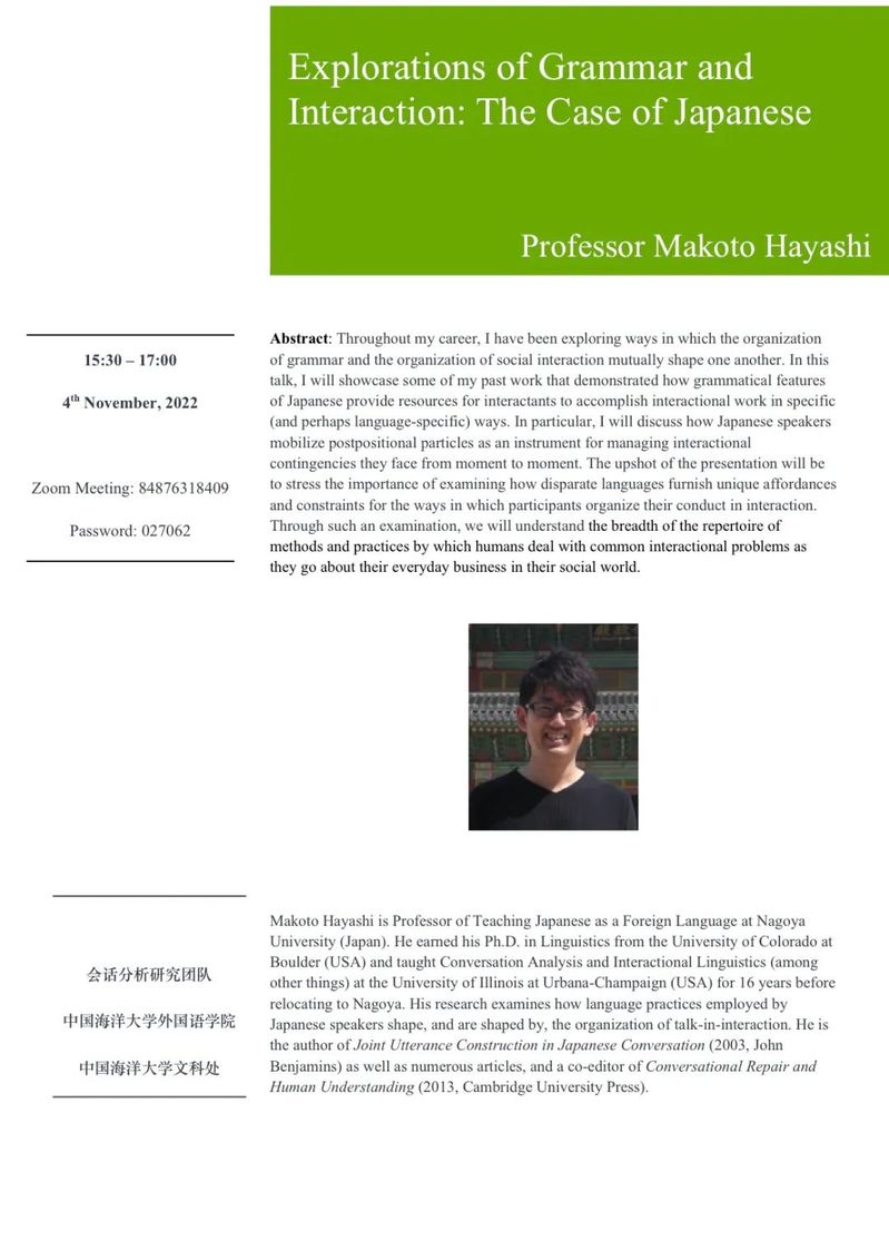团队建设丨预告:语法与互动界面研究——以日语互动为例