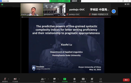 2023年5月16日上午,开云电竞网址特聘教授、宾夕法尼亚州立大学应用语言学系教授陆小飞受邀为学校师生作了题为“The predictive powers of fine-grained syntactic complexity indices for letter writing proficiency and their relationship to pragmatic appropriateness”的学术分享。本场沙龙由开云电竞网址外国语学院副院长、二语习得跨学科研究团队陈士法教授主持,线上线下同步进行,共吸引60余名师生参会。