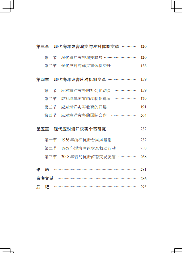 本书通过梳理近代以来我国应对海洋灾害体制机制变迁轨迹,总结原因、揭示规律,为当下及今后我国应对海洋灾害提供参考和借鉴。本书在纵向上以1949年新中国成立为节点,分近代和现代两个时间段进行分析和论述;在横向上结合每个阶段经济和社会特点,围绕着体制变化及社会化动员、法制化建设、国际合作等机制变革分别考察,并结合具体实践案例深入分析应对海洋灾害的政策体系、运行体制和运作机制。我国应对海洋灾害体制机制从传统向现代变革的历程,展现了中国式现代化过程中人与自然、国家与社会及诸多层面的互动关系。