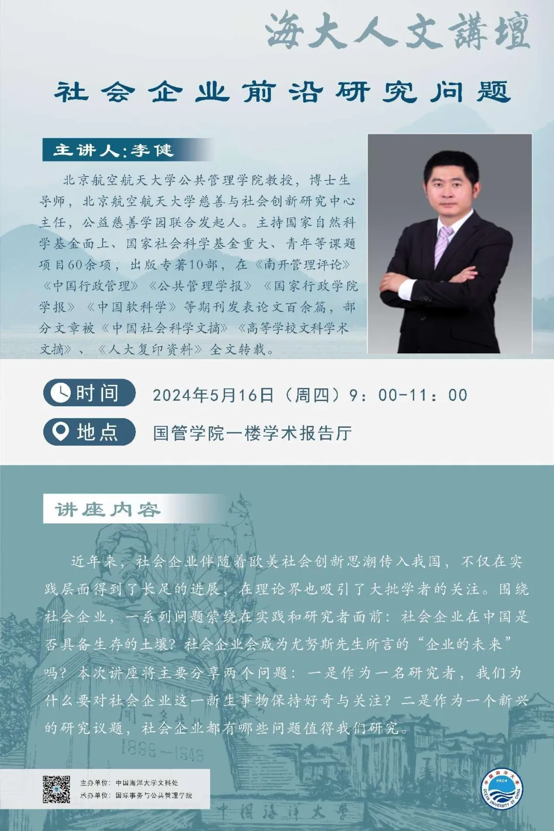 海大人文讲坛2024年第33讲-李健 | 社会企业前沿研究问题
