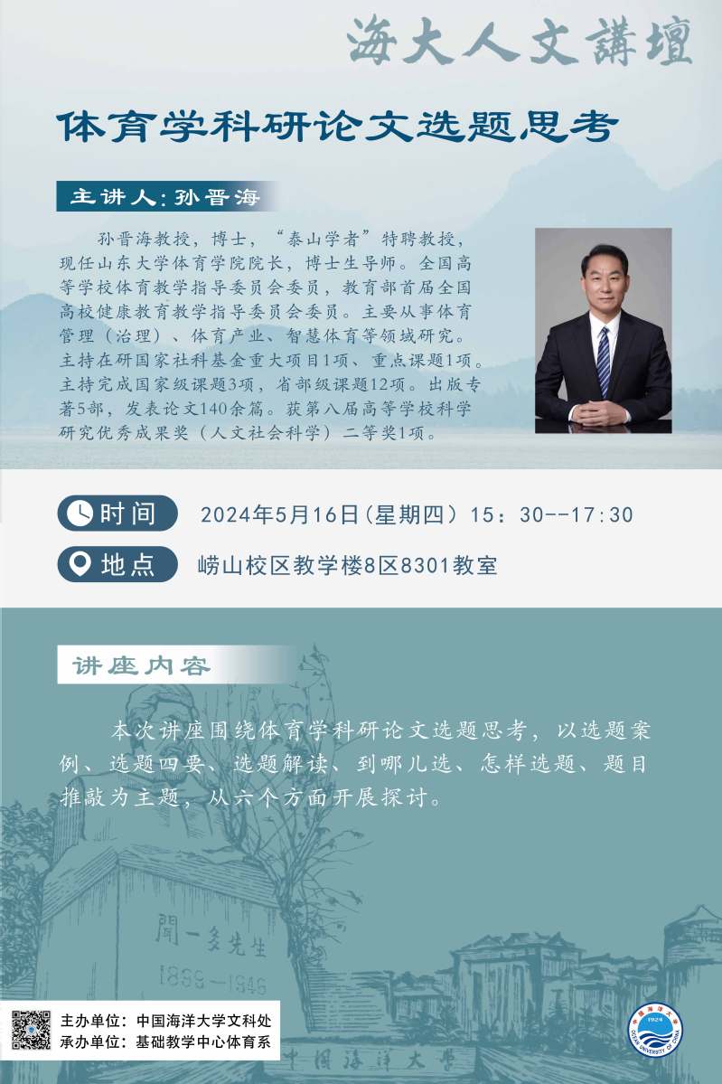 海大人文讲坛2024年第35讲-孙晋海 | 体育学科研论文选题思考