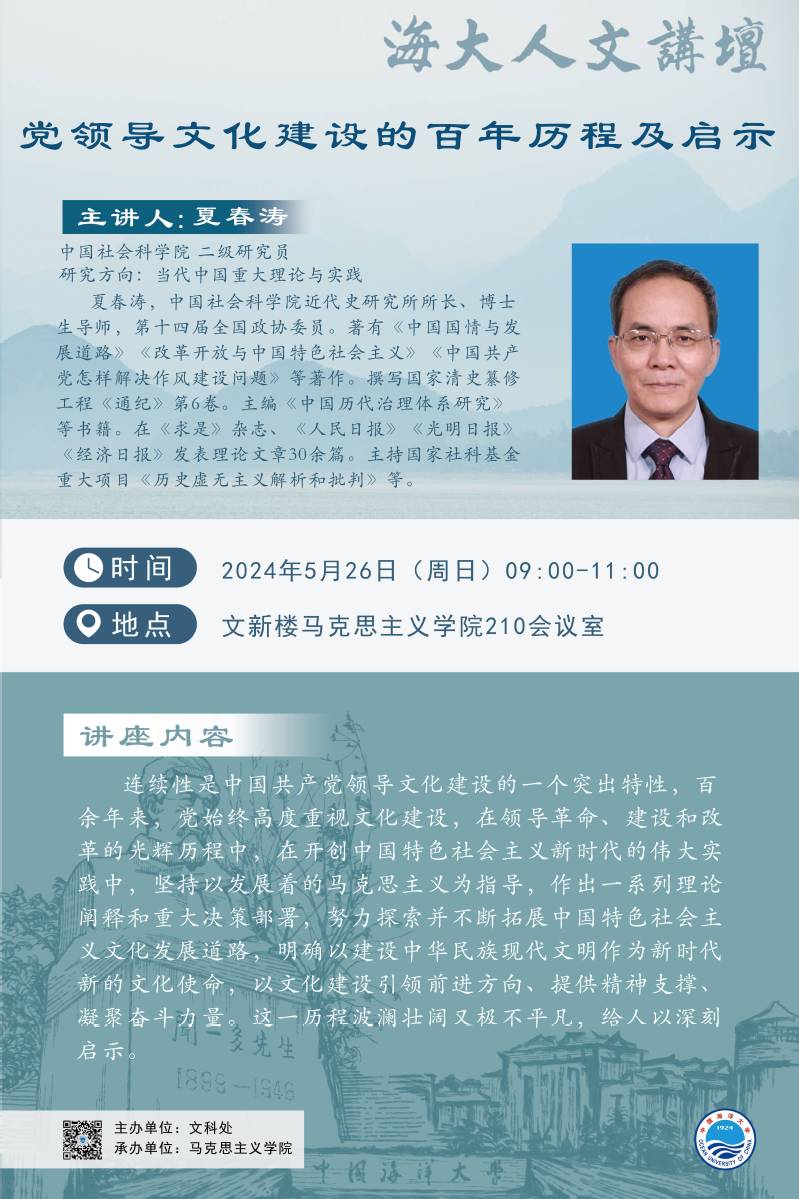 海大人文讲坛2024年第41讲-夏春涛 | 党领导文化建设的百年历程及启示
