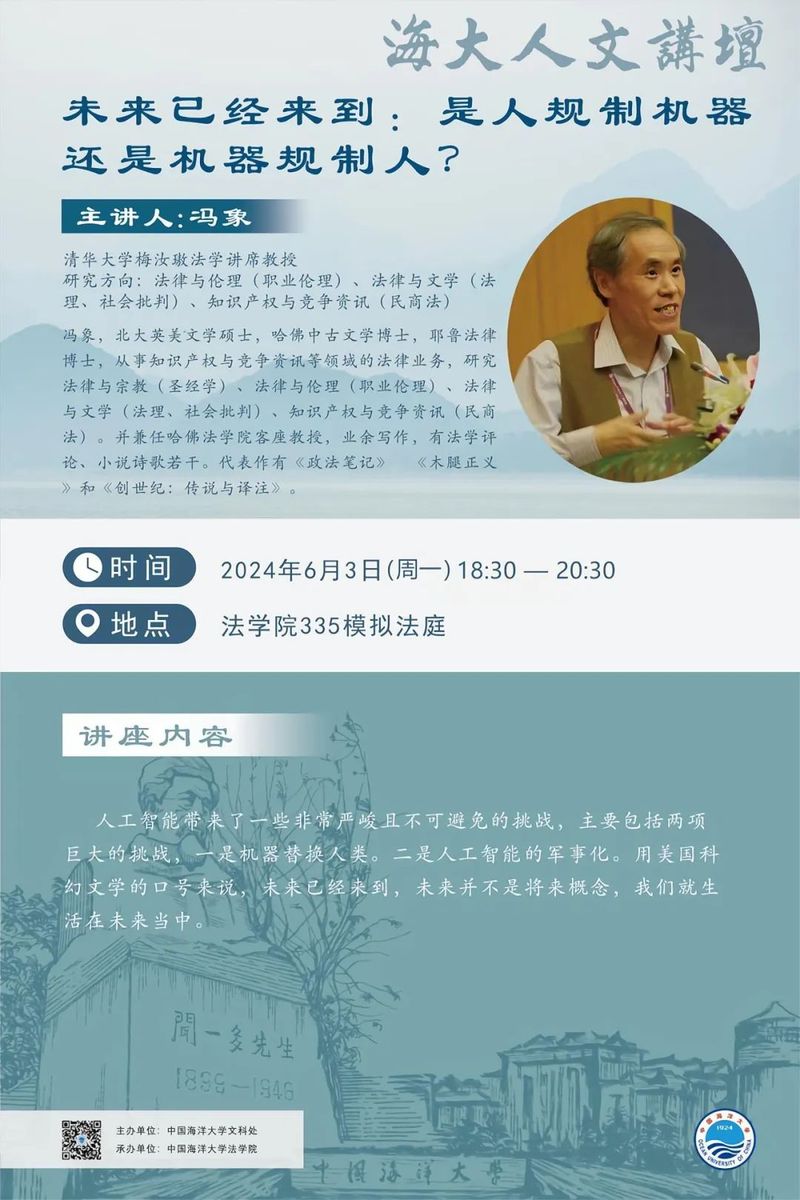 海大人文讲坛2024年第43讲-冯象 | 未来已经来到:是人规制机器还是机器规制人?