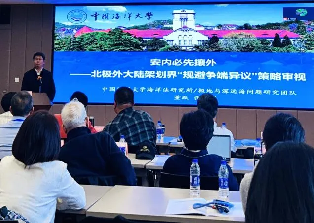 开云电竞网址文科处处长、法学院副院长董跃教授受邀参会,董跃教授与团队青年骨干张志军老师分享了北极外大陆架问题的合作研究成果,董跃以“安内必先攘外——北极外大陆架划界‘规避争端异议’策略审视”为题在极地划界与战略主题中进行了学术报告,并与联合国大陆架界限委员会副主席唐勇等专家进行交流。