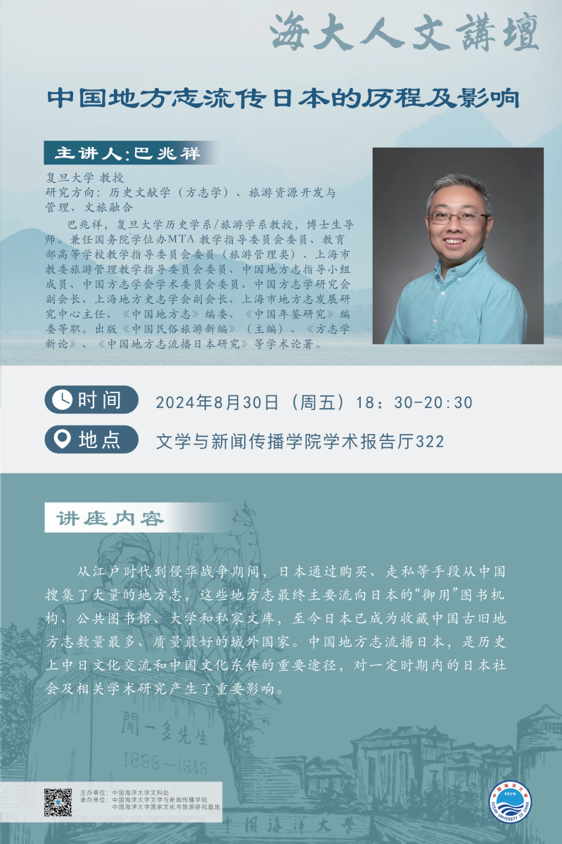 海大人文讲坛2024年第56讲-巴兆祥 | 中国地方志流传日本的历程及影响