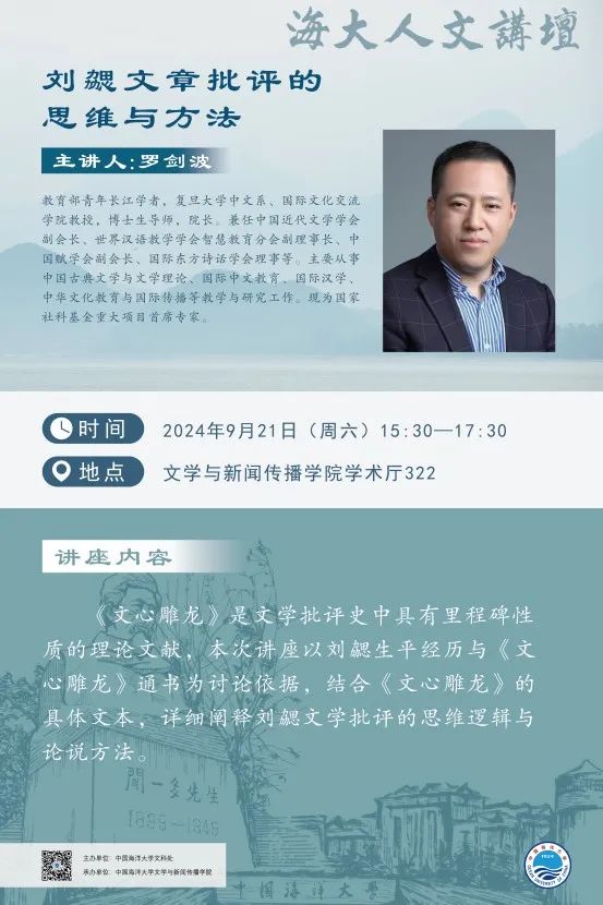 海大人文讲坛2024年第61讲- 罗剑波丨刘勰文章批评的思维与方法