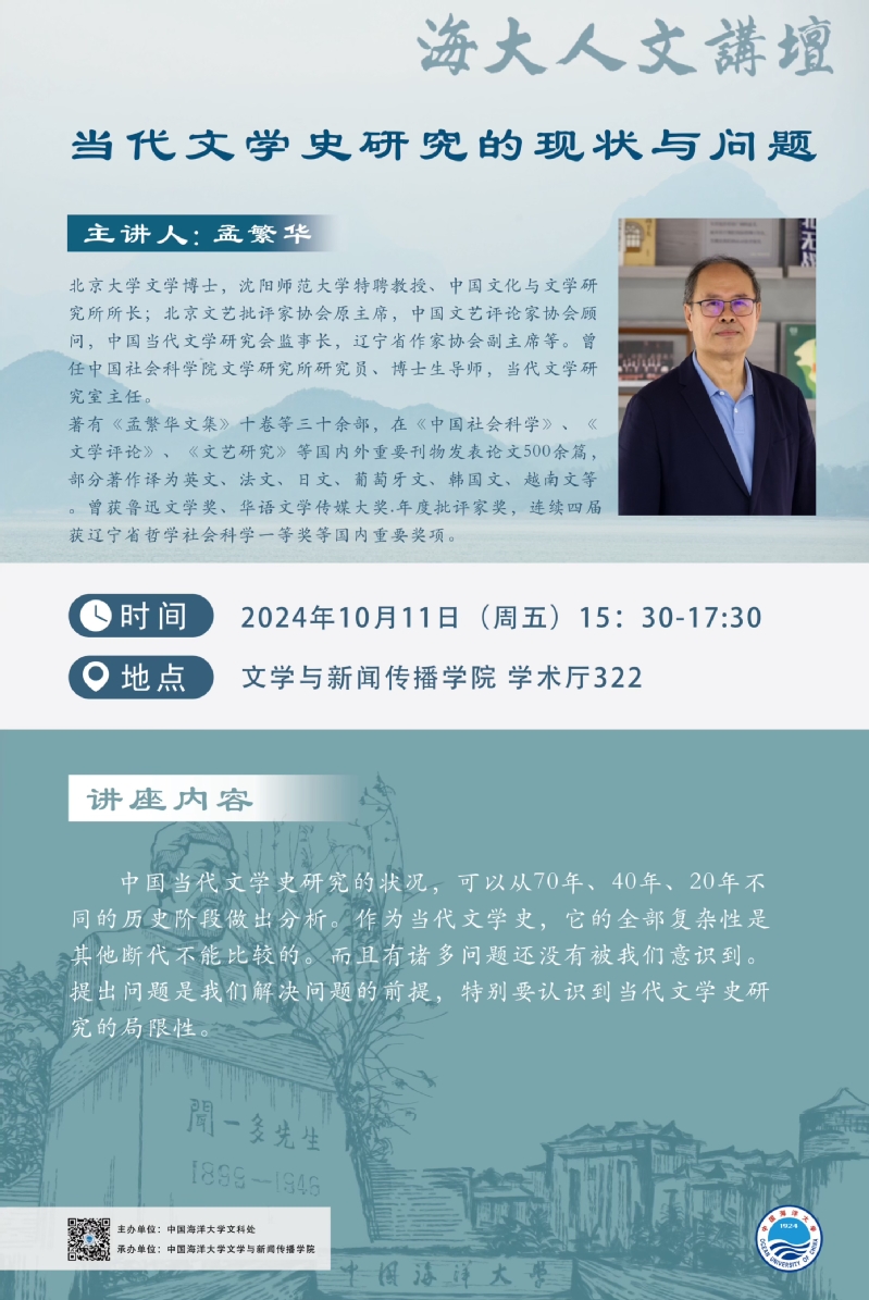 海大人文讲坛2024年第71讲-孟繁华丨当代文学史研究的现状与问题