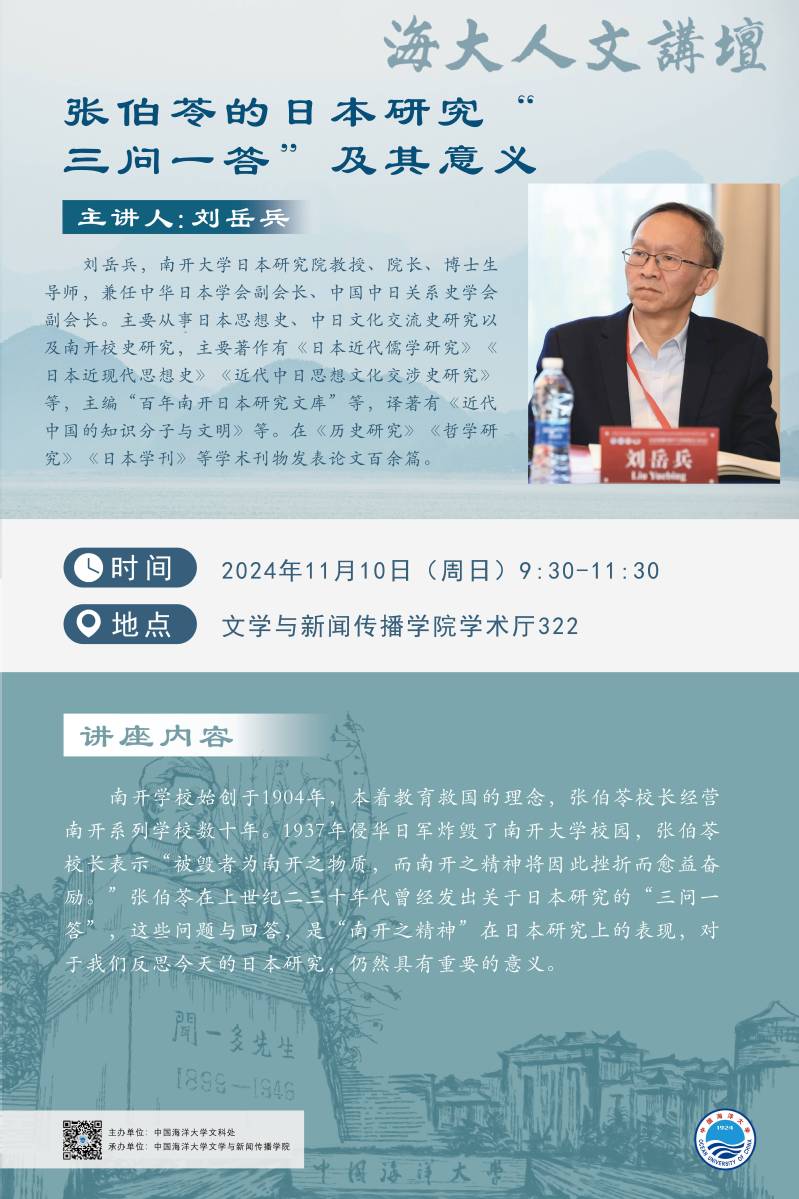 海大人文讲坛2024年第85讲-刘岳兵丨张伯苓的日本研究“三问一答”及其意义