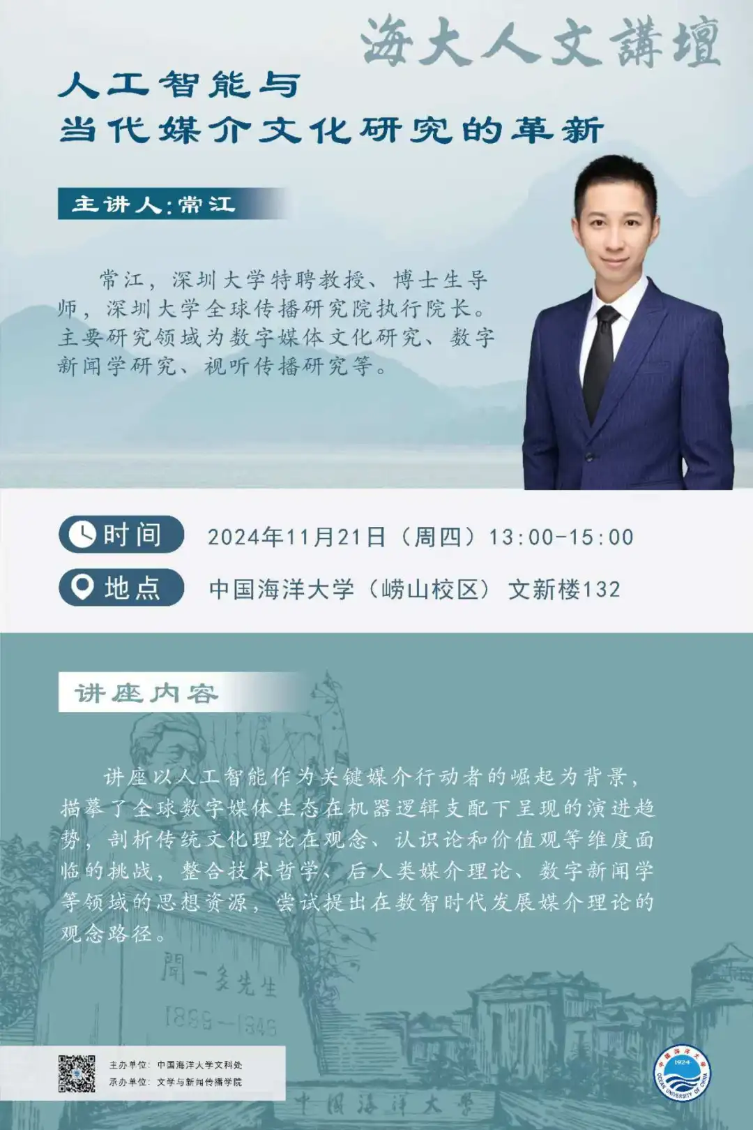 海大人文讲坛2024年第88讲-常江丨人工智能与当代媒介文化研究的革新