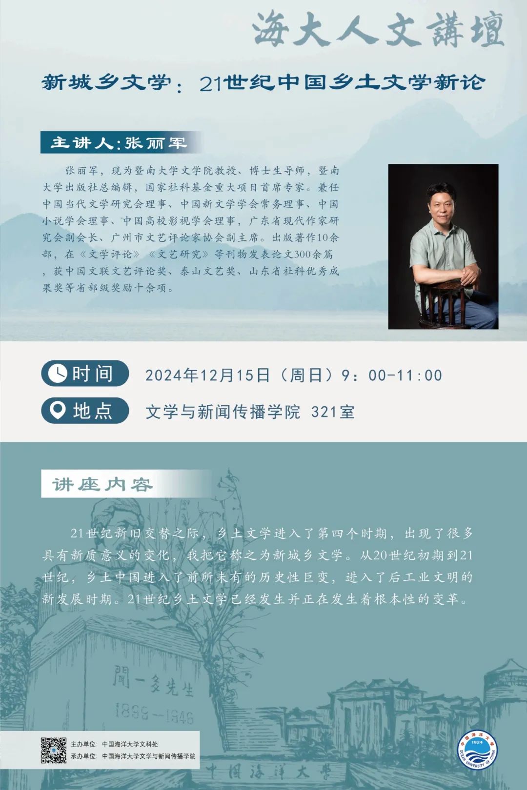 海大人文讲坛2024年第98讲-张丽军丨新城乡文学:21世纪中国乡土文学新论