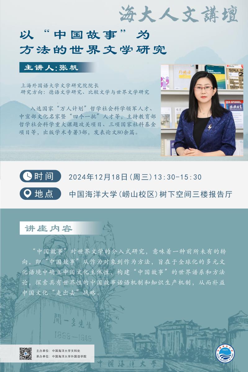 海大人文讲坛2024年第99讲-张帆丨以“中国故事”为方法的世界文学研究