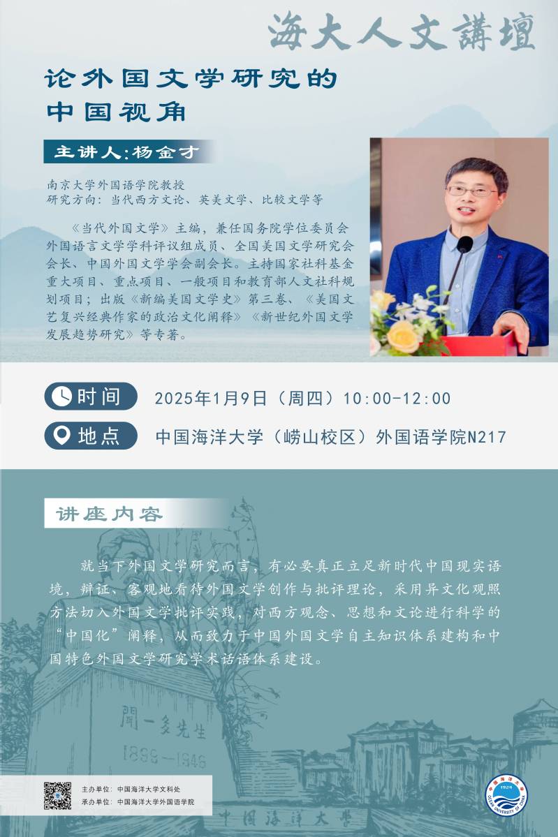 海大人文讲坛2025年第2讲-杨金才 | 论外国文学研究的中国视角