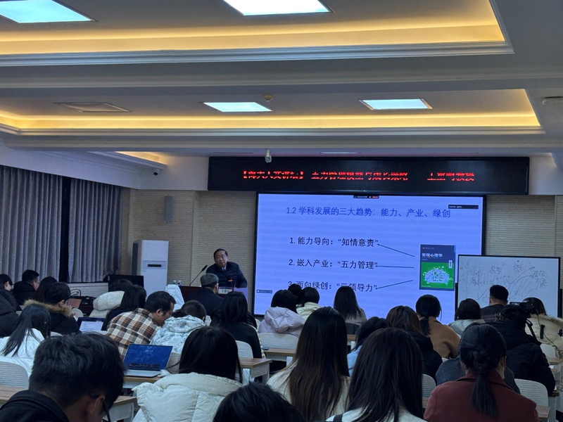 12月27日,浙江大学人文社会科学资深教授王重鸣做客“海大人文讲坛”,在管理学院南3-1学术报告厅做了题为“五力管理模型与成长策略”的报告。本次讲座由管理学院院长王竹泉教授主持,管理学院师生共同参与。