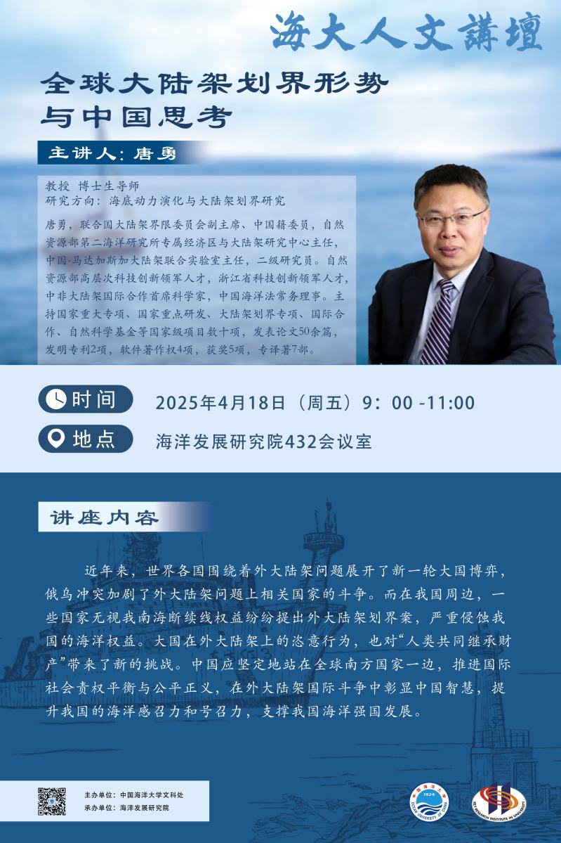 海大人文讲坛2025年第23讲-唐勇丨全球大陆架划界形势与中国思考