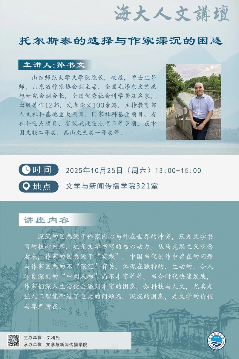 海大人文讲坛2025年第75讲—孙书文丨托尔斯泰的选择与作家深沉的困惑