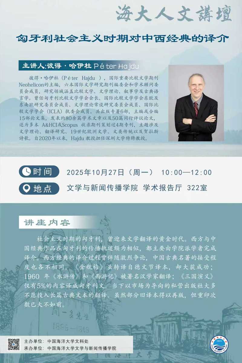 海大人文讲坛2025年第77讲—彼得·哈伊杜丨匈牙利社会主义时期对中西经典的译介