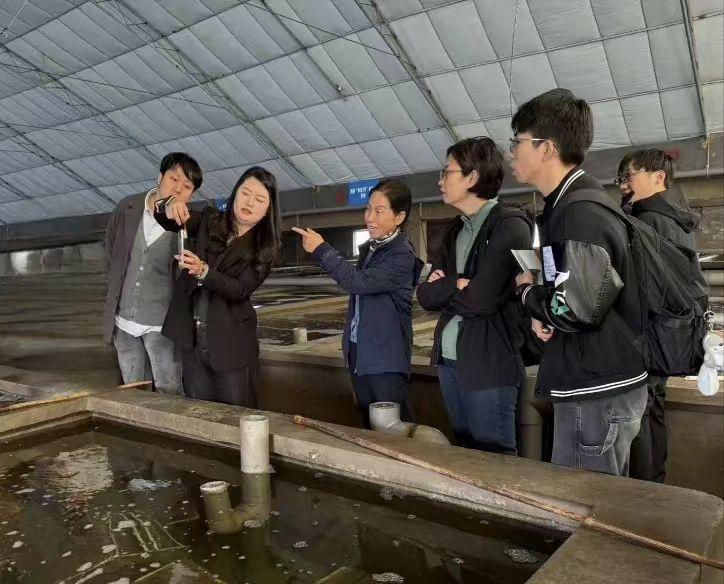团队最后赴青岛鲁海丰食品集团和青岛海洋发展集团有限公司调研海洋牧场多元化运营与养殖工船智能化发展情况。在青岛鲁海丰食品集团,总经理助理周美玲介绍了企业历史沿革、资质荣誉及研产能力,团队一行实地考察休闲垂钓区、深水抗风浪网箱和海洋特色民俗建筑,深入了解其“养殖+观光+文化”的多元化运营模式;在青岛海洋发展集团,工作人员系统解读企业“破冰—踏浪—弄潮”三阶段发展脉络,并重点展示“国信1号”“国信2-1号”“国信2-2号”养殖工船的技术特点、智能化运营模式及经济效益。