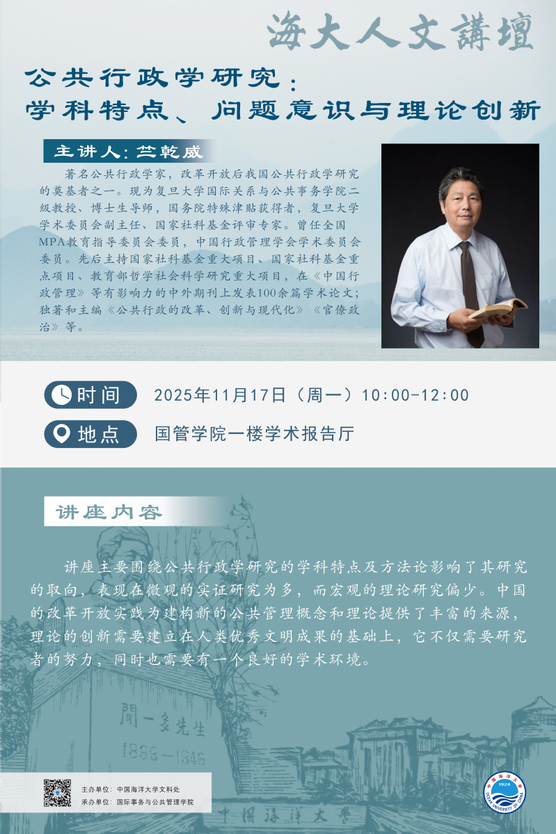 海大人文讲坛2025年第84讲—竺乾威丨公共行政学研究:学科特点、问题意识与理论创新