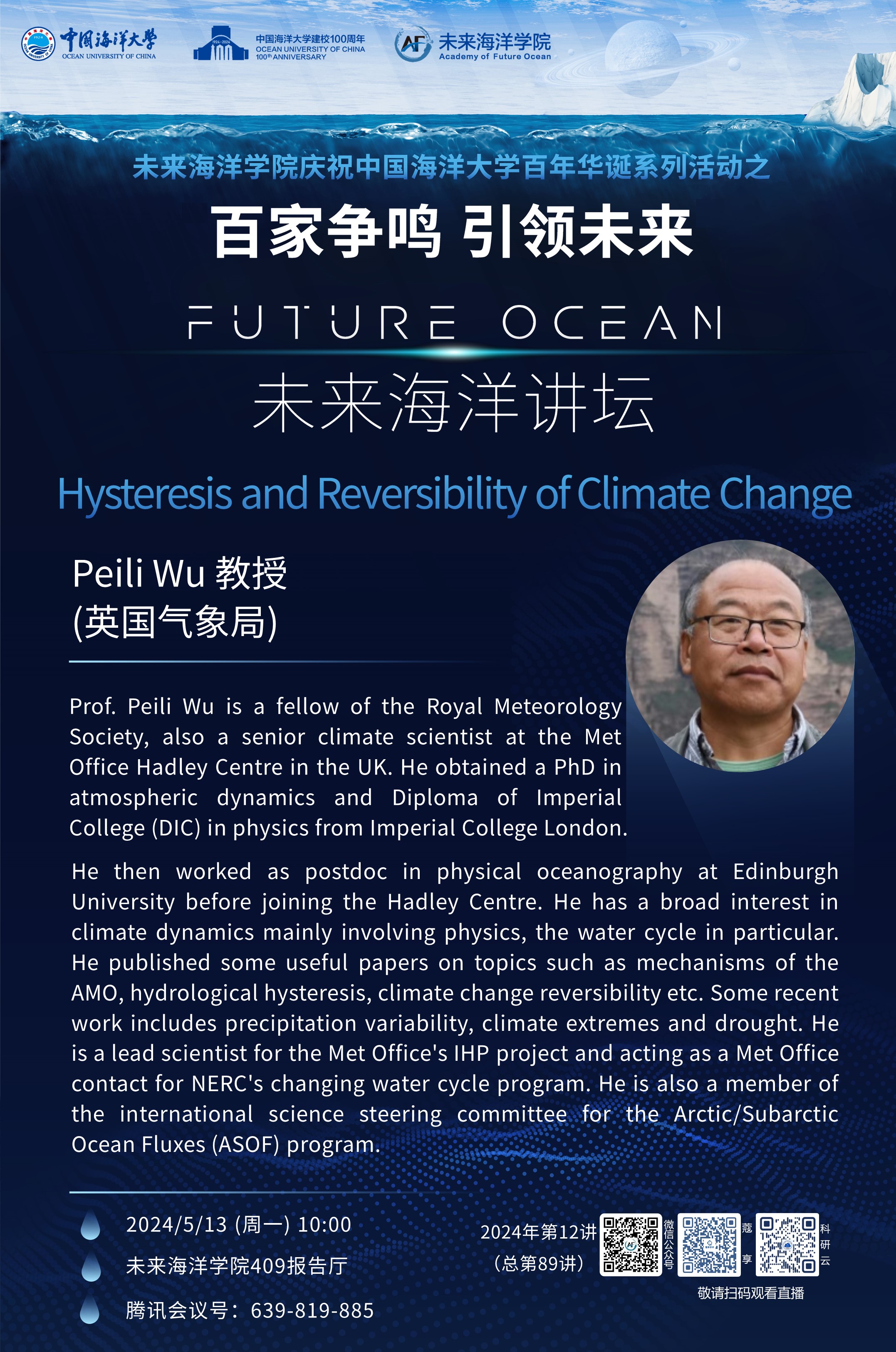 百家争鸣 引领未来丨未来海洋讲坛第89讲 (2024年第12讲) -Peili Wu: Hysteresis and Reversibility of Climate Change