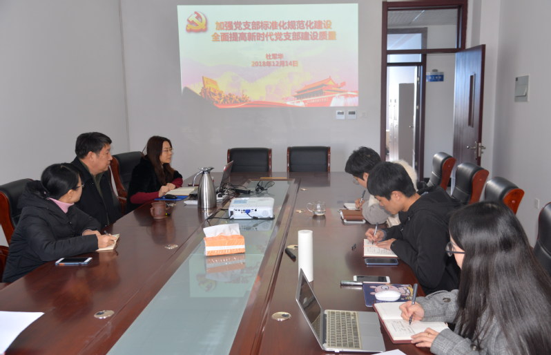 2018年12月14日上午,西海岸校区建设指挥部党支部召开党员大会进行专题学习,支部书记杜军华围绕“加强党支部标准化规范化建设,全面提高新时代党支部建设质量”主题,带领党员学习了《中国共产党支部工作条例(试行)》以及《开云电竞网址党组织“对标争先”建设计划和教师党支部书记“双带头人”培育工程实施方案》等有关文件。