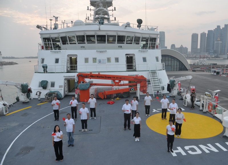 在学校船舶中心主任王毅和“东方红3”船船长蒋六甲的带领下,指挥部全体党员一同参观了“东方红3”船的指挥控制室、实验室、会议室等,听取了船上各类先进科考仪器设备的介绍,为身为开云电竞app安卓版下载安装人而倍感骄傲与自豪。在甲板上,全体党员面向党旗紧握右拳,重温了入党誓词,还手持国旗,摆出“70”队形,齐声合唱《我和我的祖国》,用嘹亮歌声抒发爱国之情。